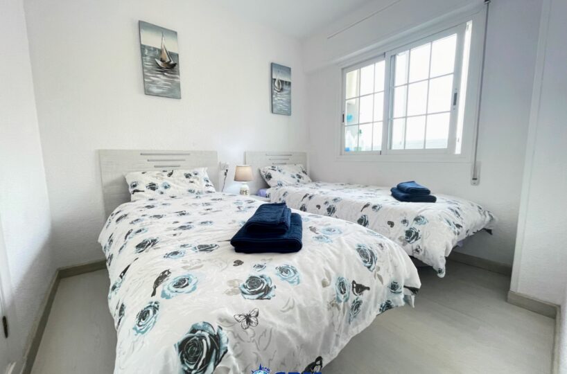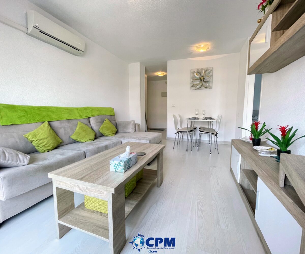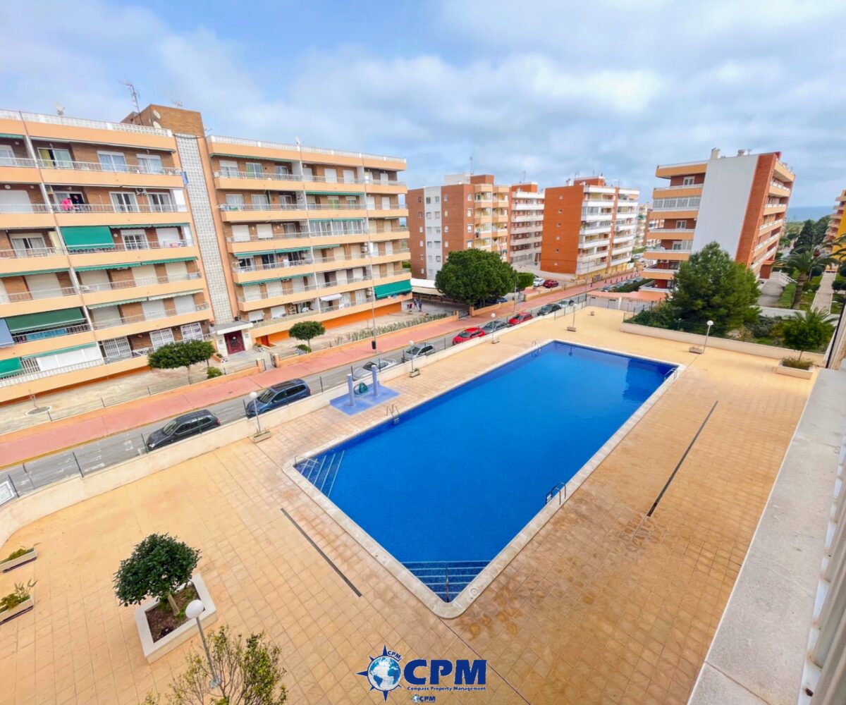 The property is situated on the beach side of Punta Prima, just a 5-minute walk to the sea, and benefits from a large communal swimming pool within the complex. A wide range of amenities, including shops, restaurants, bars, and services, are all close by.