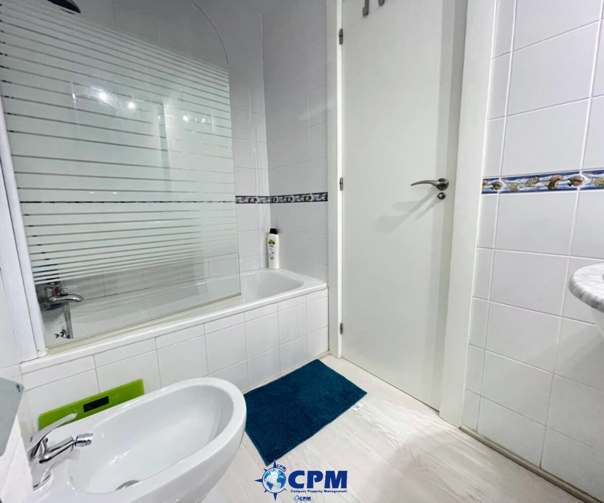 Upon entering the apartment, you are welcomed into a hallway that leads directly to the bright living room. Straight ahead is the bathroom, while the property also offers two well-proportioned bedrooms. From the living area, there is access to a private balcony overlooking the communal swimming pool, providing a pleasant space to relax and enjoy the surroundings.