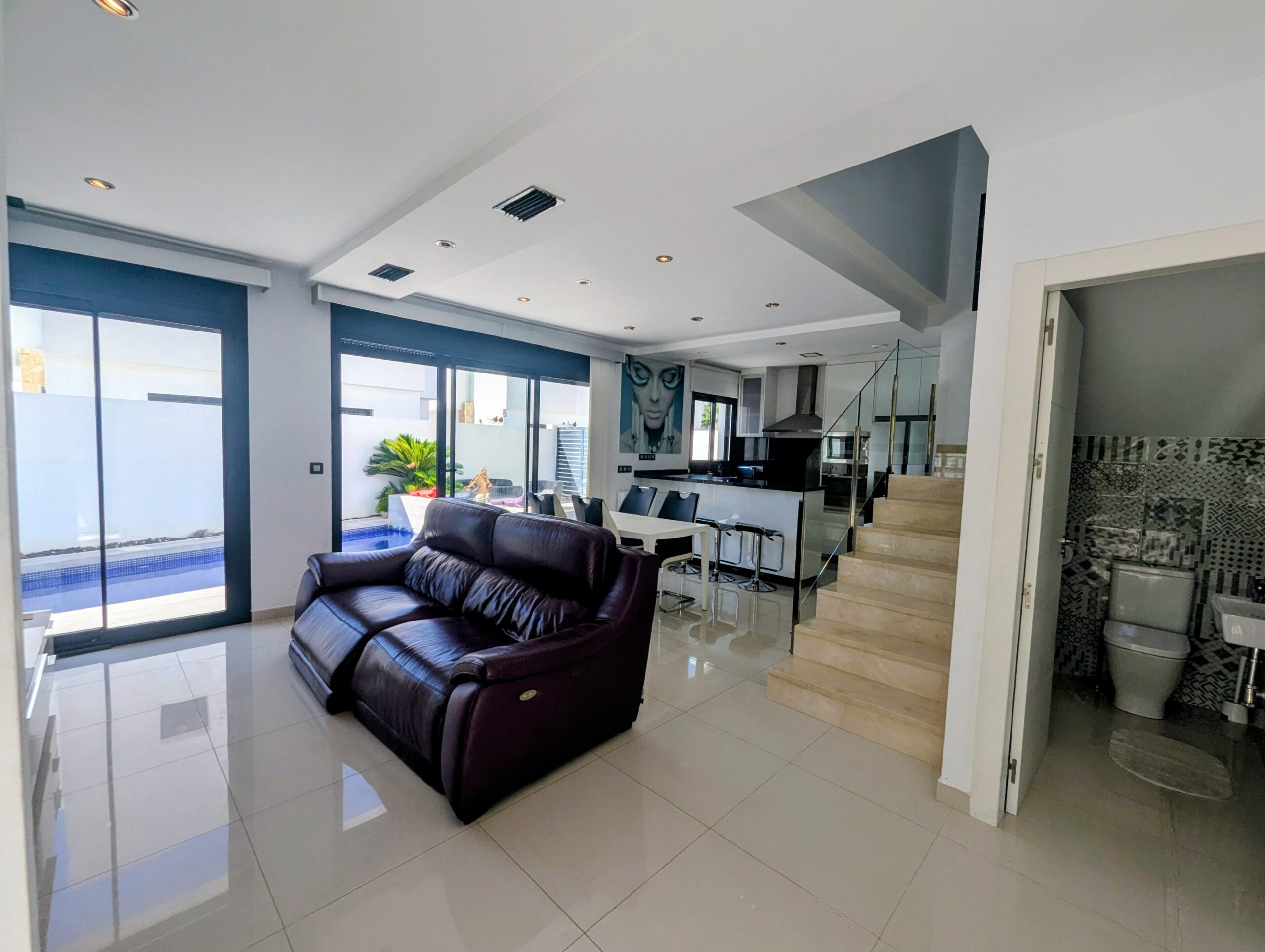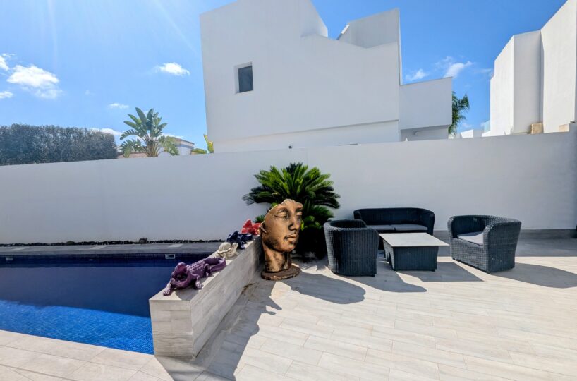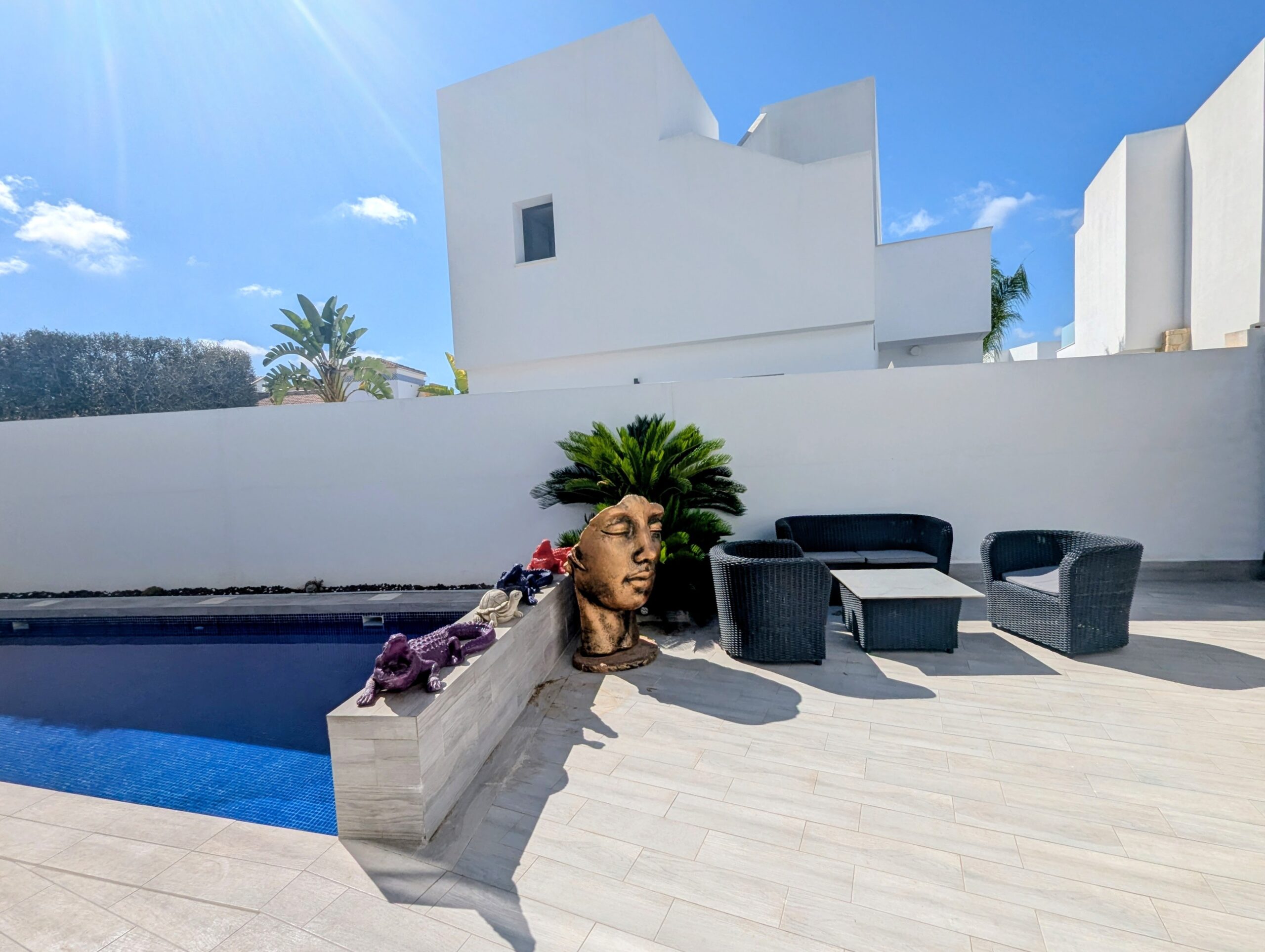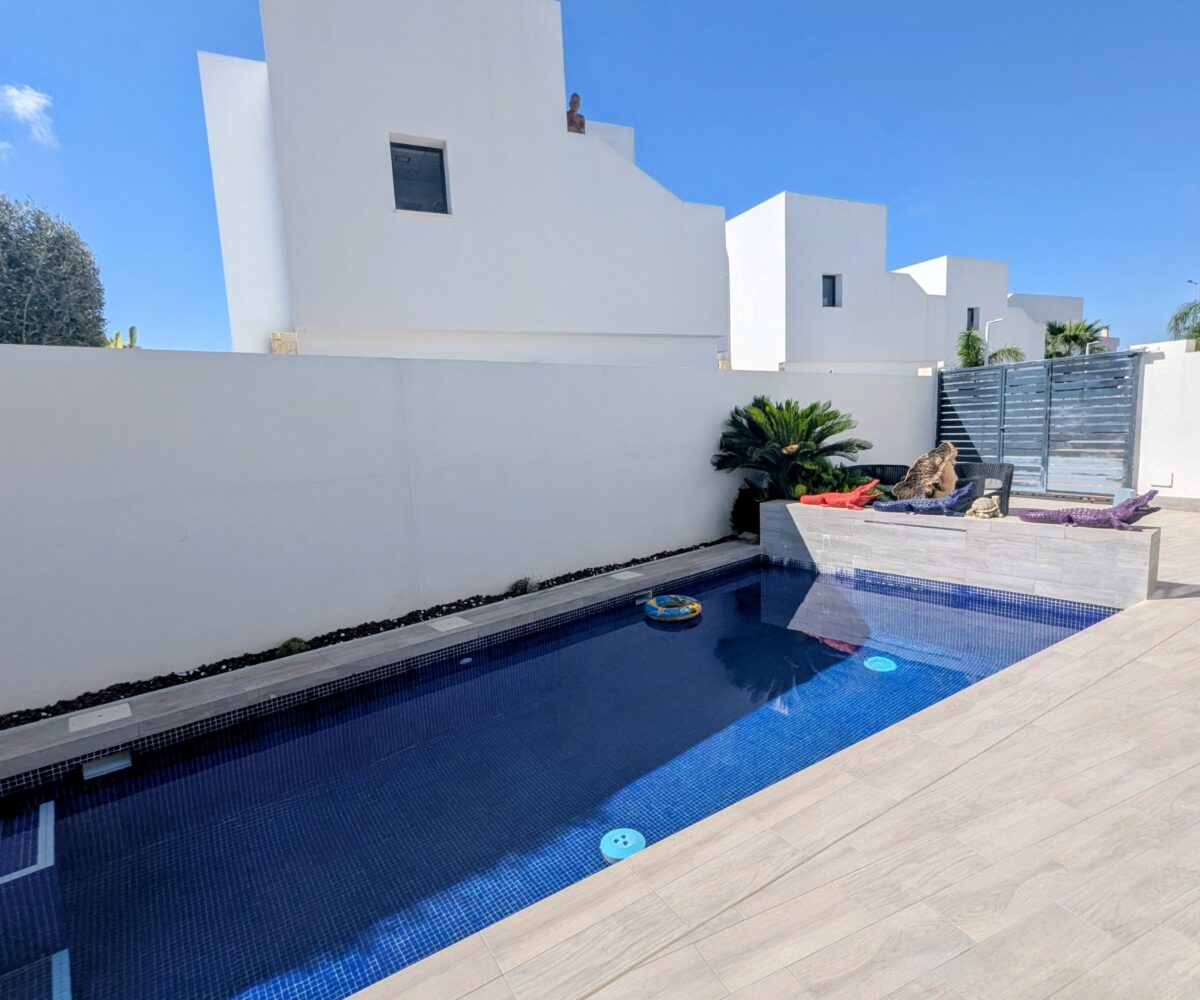 Beautifully presented villa located in the sought-after La Herrada urbanisation, just minutes from the centre of Los Montesinos. Offering spacious interiors, lush outdoor areas, and all the comforts for relaxed Mediterranean living.
