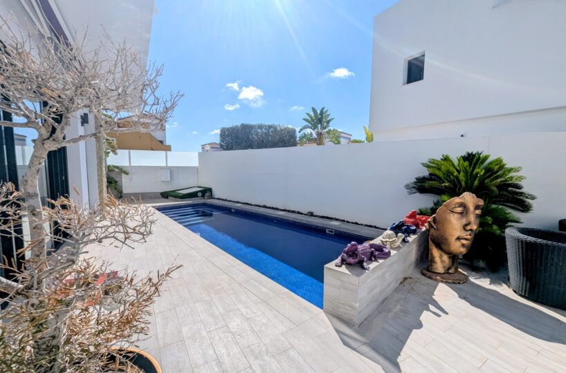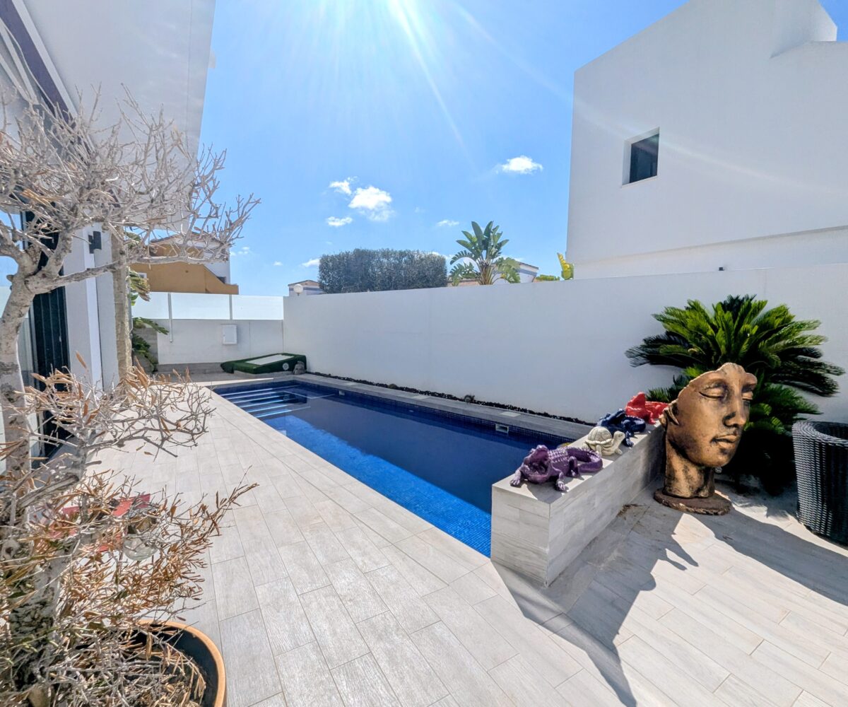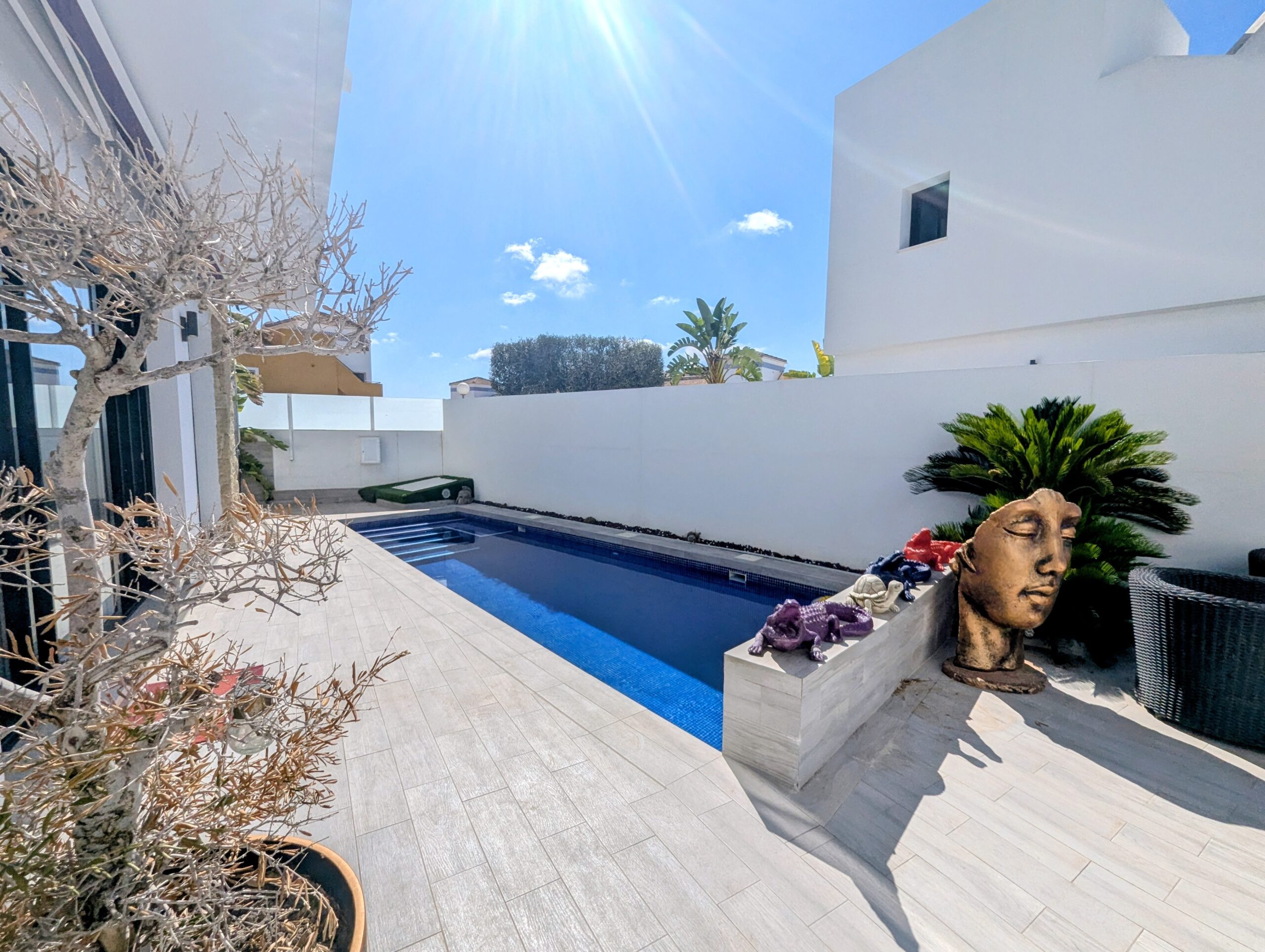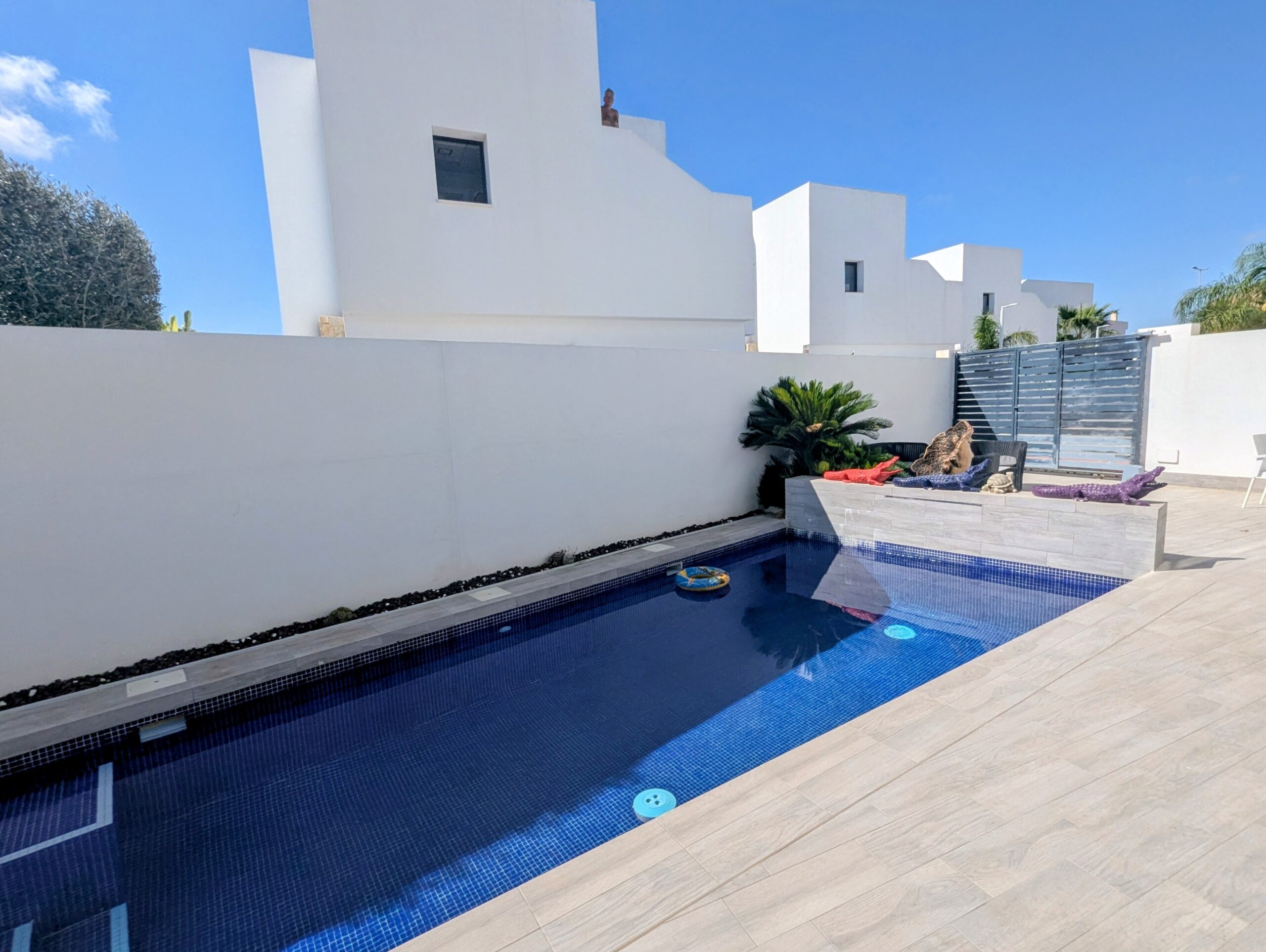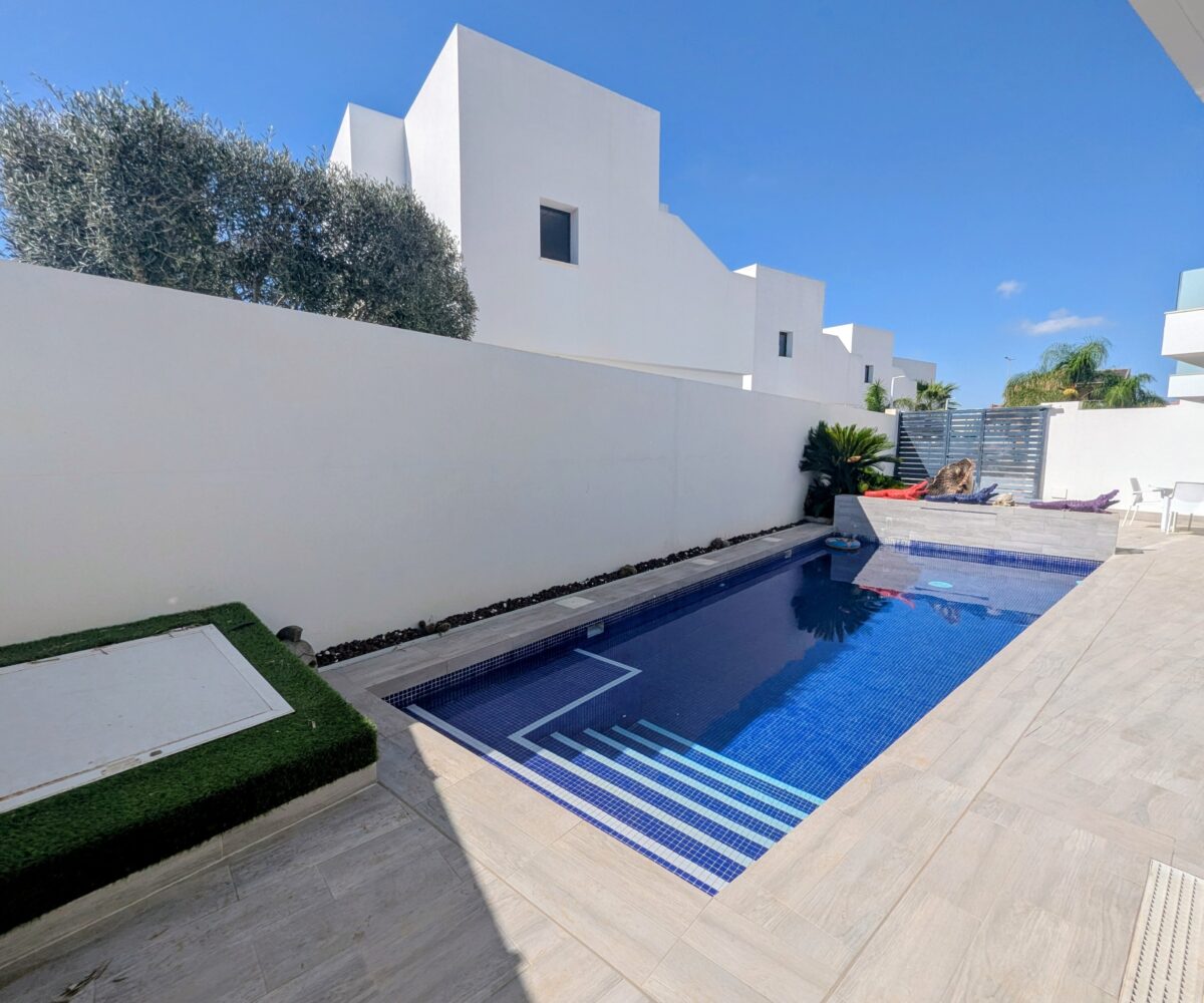 Beautifully presented villa located in the sought-after La Herrada urbanisation, just minutes from the centre of Los Montesinos. Offering spacious interiors, lush outdoor areas, and all the comforts for relaxed Mediterranean living.