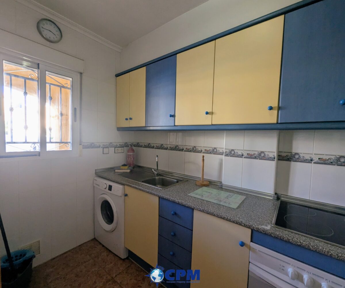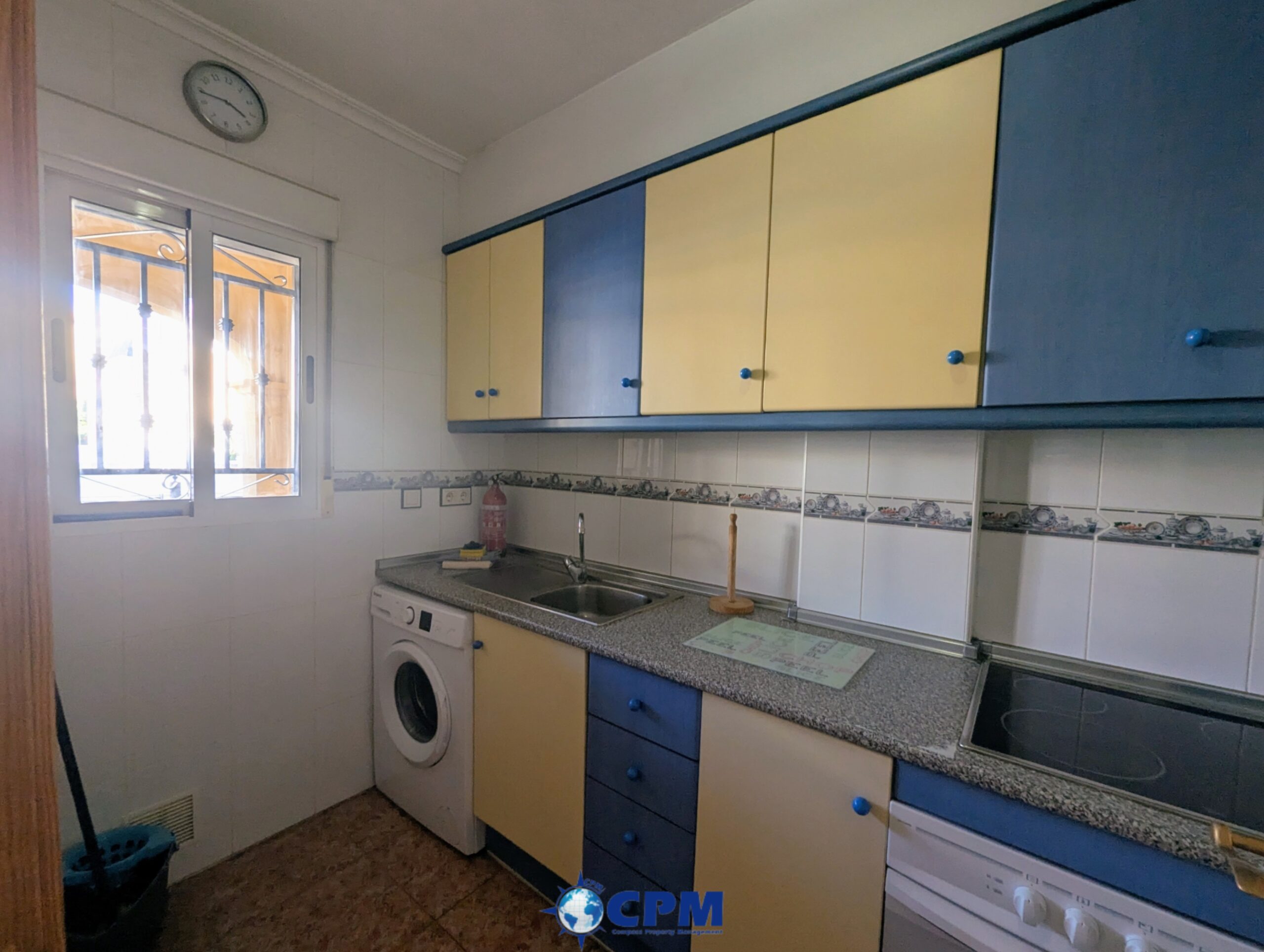 La propiedad cuenta con un jardín delantero privado y una terraza, lo que proporciona una agradable zona al aire libre. Al entrar en el piso, nos recibe un amplio salón-comedor, con una cocina independiente a la izquierda, equipada con electrodomésticos.
