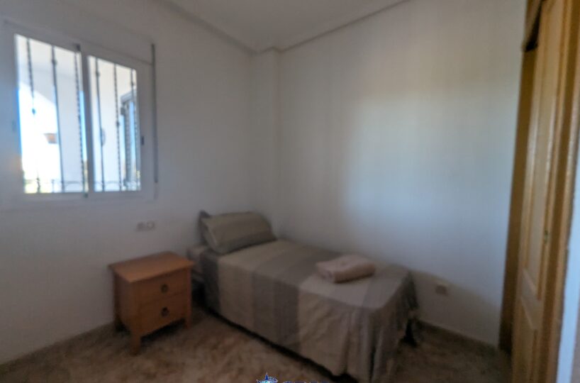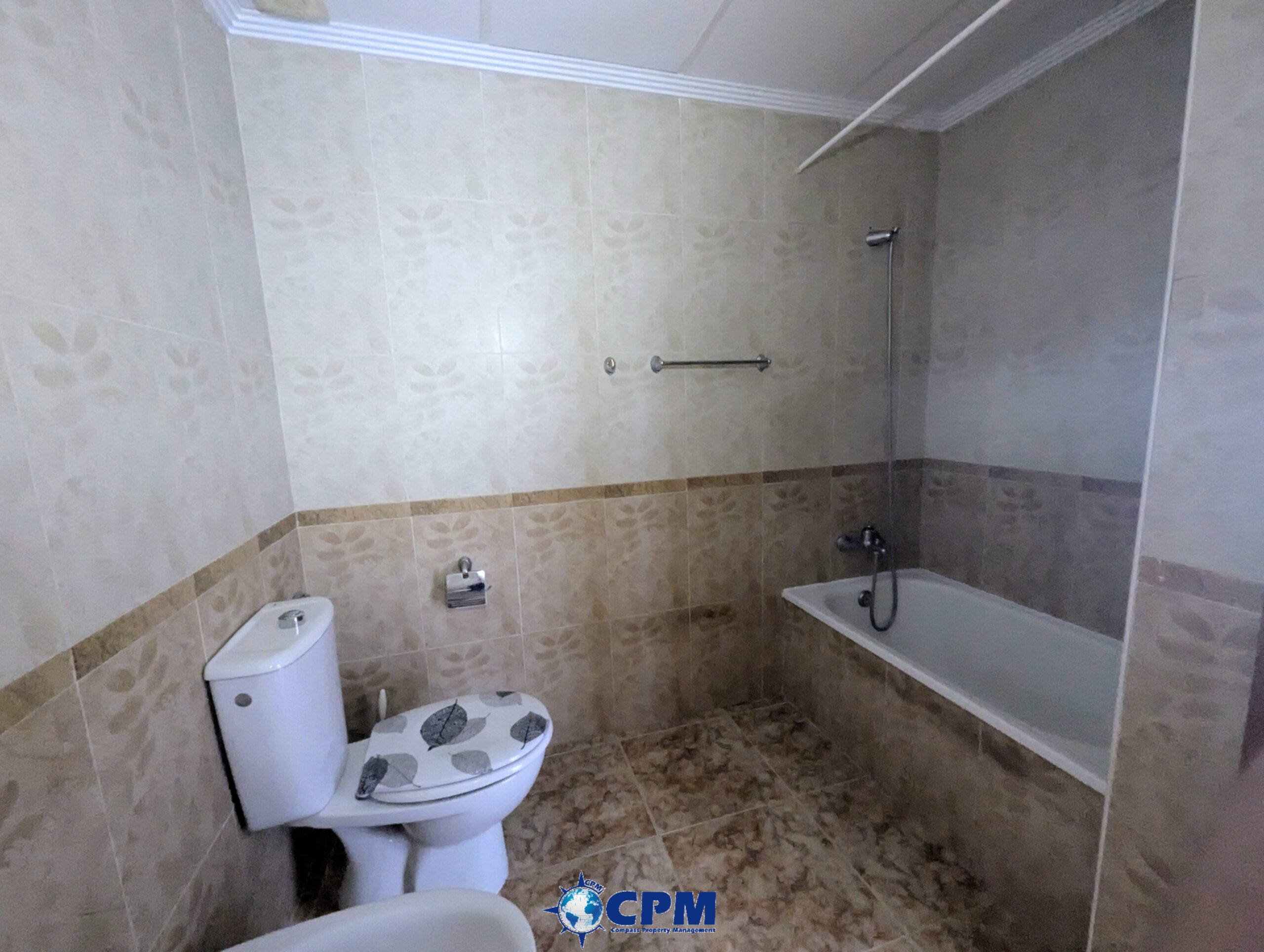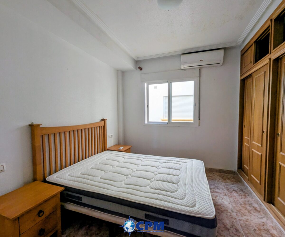 The apartment offers two bedrooms and one family bathroom, and also benefits from access to a well-maintained communal swimming pool.