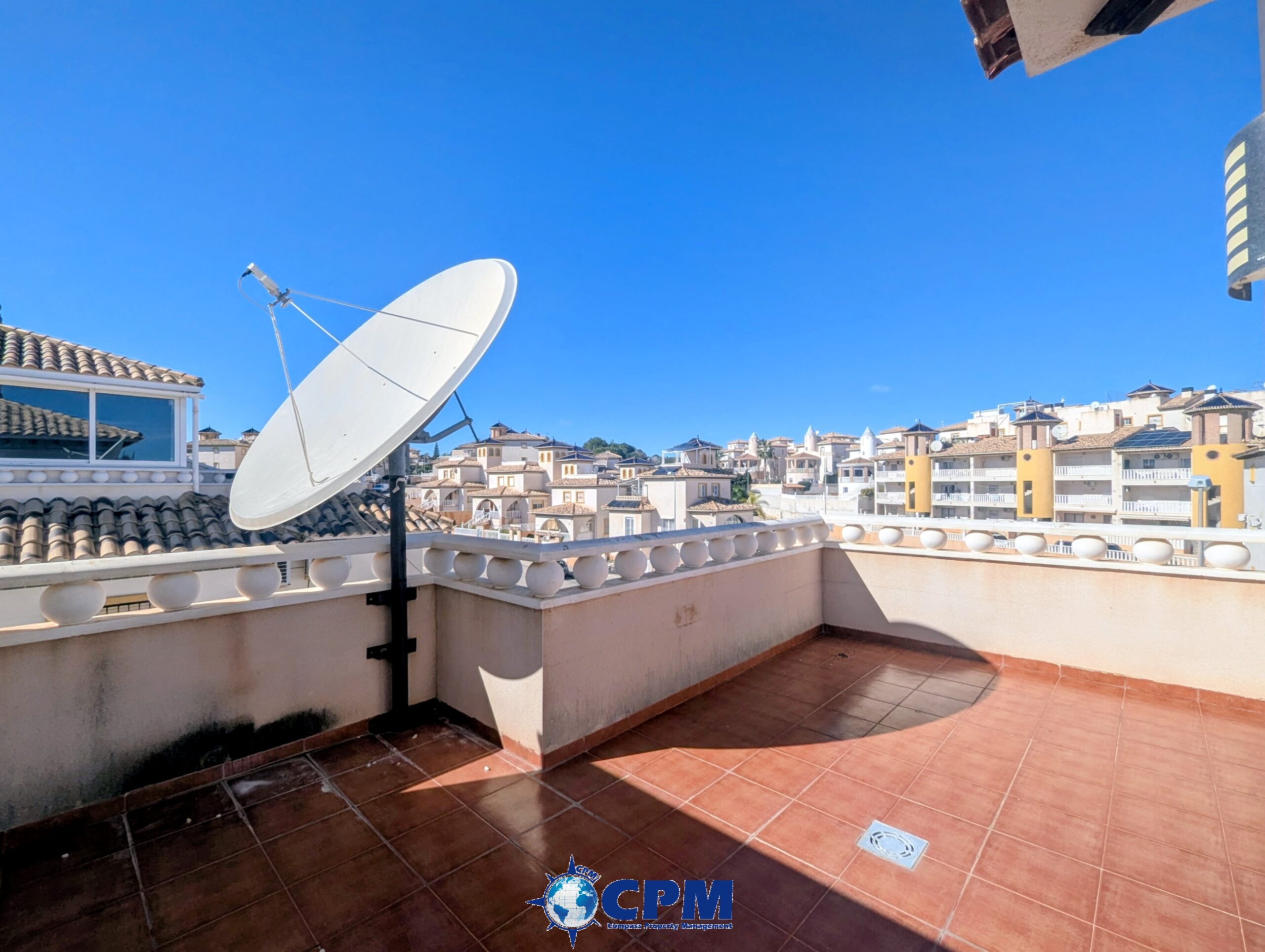 The first floor features two additional bedrooms, including a master bedroom with a private balcony, along with a family bathroom. From this level, there is access to a private solarium, offering additional outdoor space with open views — ideal for sunbathing or relaxing.